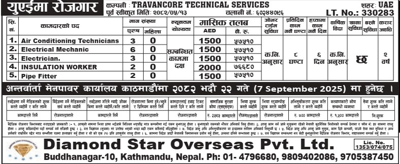For any skilled worker considering a move, finding a reliable source of information is half the battle. This is where the role of a dedicated aggregator becomes critical. By curating and verifying opportunities from accredited recruiters, a service like ShramSansar acts as an indispensable bridge. It connects Nepal’s talented technical manpower with esteemed international employers like TRAVANCORE TECHNICAL SERVICES, ensuring that every detail from salary breakdowns to recruiter contact information is accessible and clear. The very essence of ShramSansar is to demystify the process of foreign employment, and listings of this caliber are a testament to that mission. For electricians, AC technicians, and pipe fitters looking to leverage their skills in a dynamic market like the UAE, this represents a golden chance to work with a reputable company on major projects. The presence of such a high-quality opportunity on the ShramSansar platform should give potential applicants great confidence in its legitimacy. As a final note to all prospective applicants browsing through ShramSansar, it is imperative to act with diligence and speed. Interested and eligible candidates must ensure they submit their applications through the designated agency, Diamond Star Overseas, well before the fast-approaching deadline on September 7th, 2025. This is more than just a job; it’s a career-defining opportunity facilitated by the trusted network that ShramSansar provides.